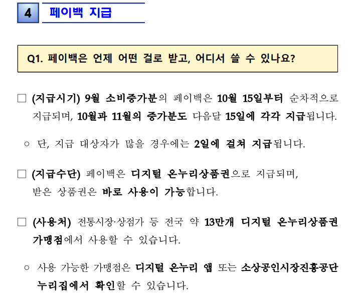 - 상생페이백은 9~11월 카드 사용 증가분의 20%를 돌려주는 제도다.