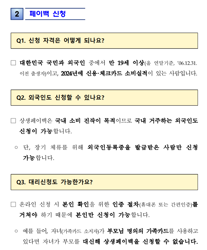 - 대상은 만 19세 이상(2006년 12월 31일 이전 출생자)이며, 2024년 카드 사용 실적이 있어야 한다.