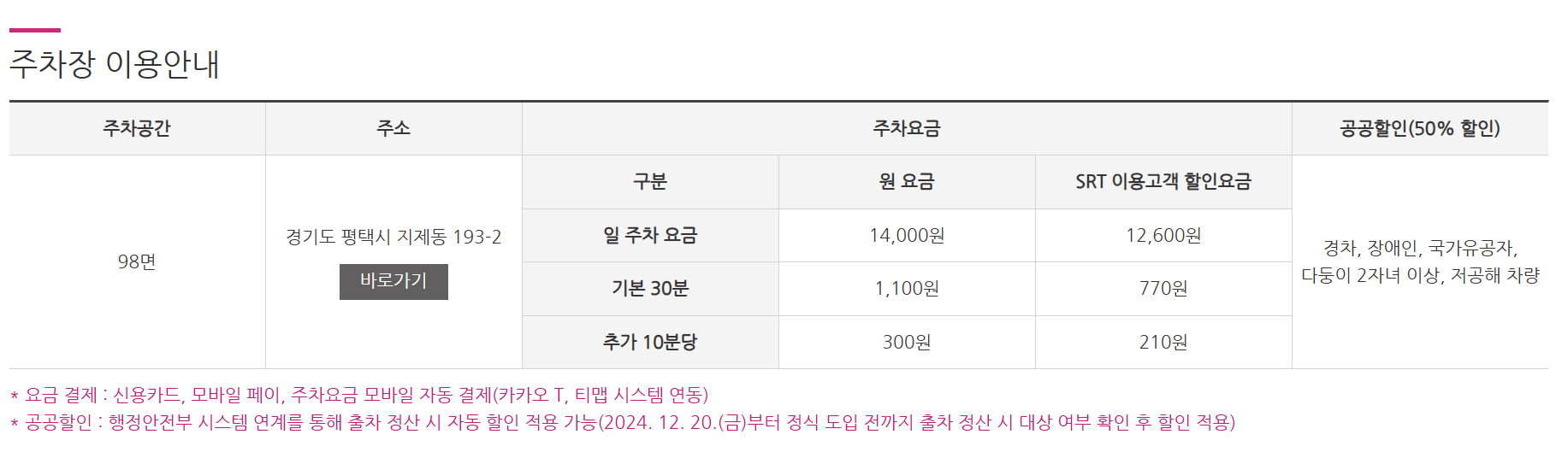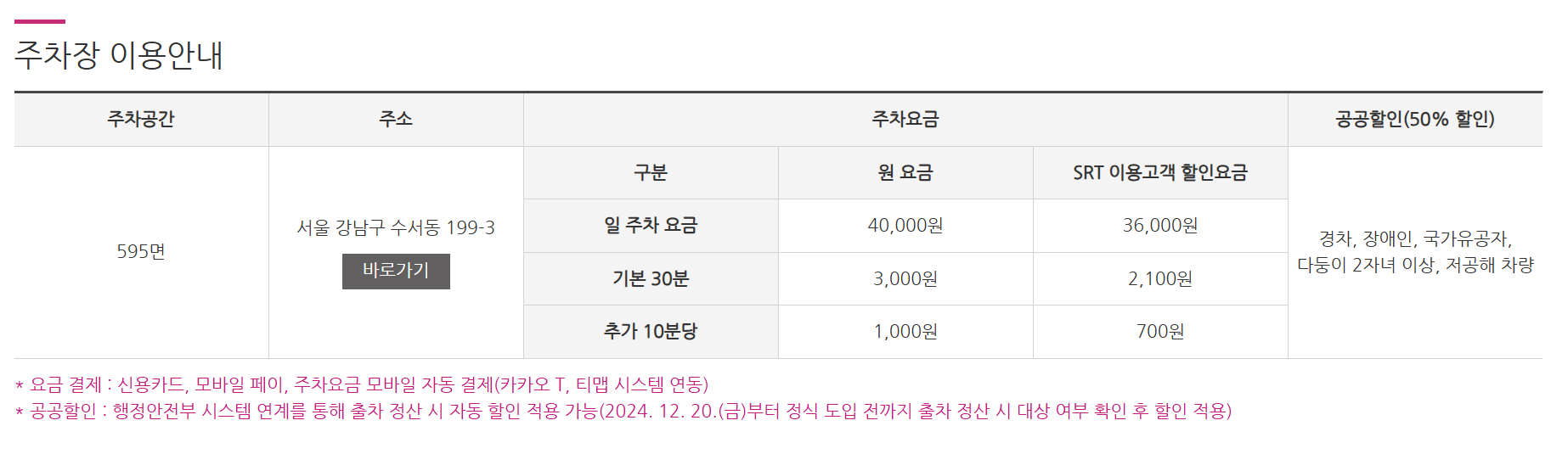 SRT를 이용할 때 자차를 함께 이용하는 분들이라면 주차장 요금도 결코 무시할 수 없는 부분입니다.